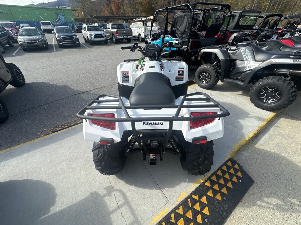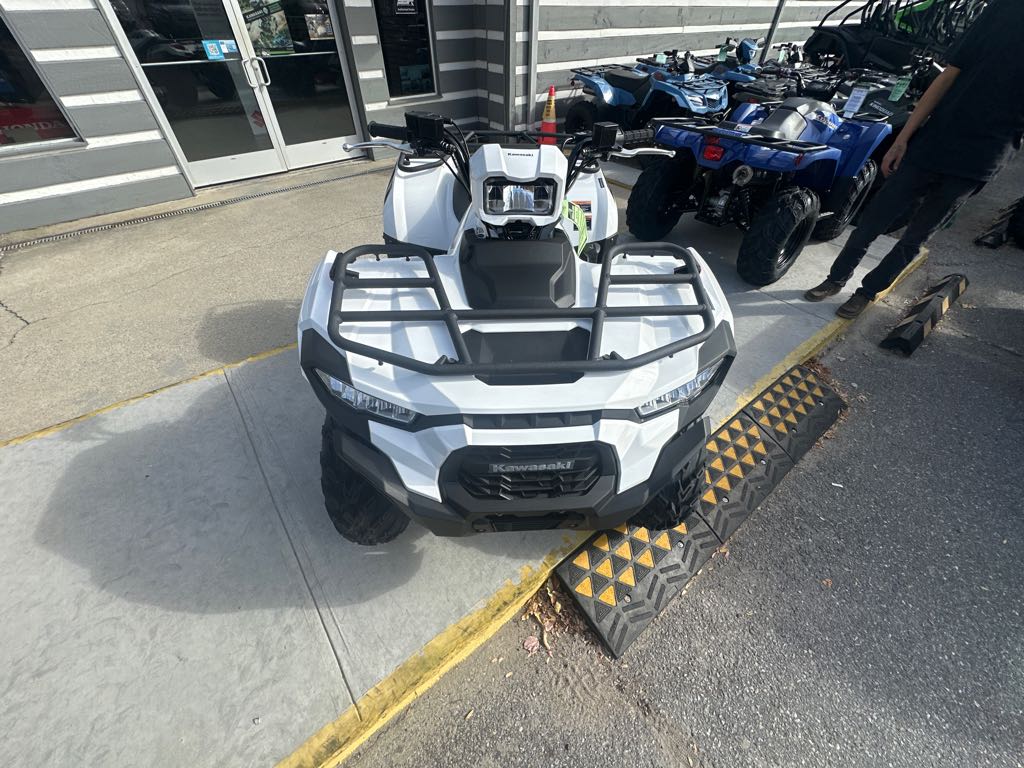 KAWASAKI CARES: Read Owner’s Manual and all on-product warnings. Warning: ATVs can be hazardous to operate. For your safety: Always wear a helmet, eye protection, and protective clothing. Never carry a passenger. Never ride under the influence of drugs or alcohol. Never ride on public roads or pavement. Avoid excessive speeds and stunt driving. Be extra careful on difficult terrain. Kawasaki ATVs with engines over 90cc are recommended for use only by persons 16 years of age or older. Kawasaki also recommends that all ATV riders take a training course. For more information, see your dealer, call the ATV Safety Institute at 1-800-887-2887, or go to www.atvsafety.org. ©2025 Kawasaki Motors Corp., U.S.A.